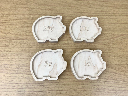 Set of 4 Wooden Pig Money Sorting Trays for Cents