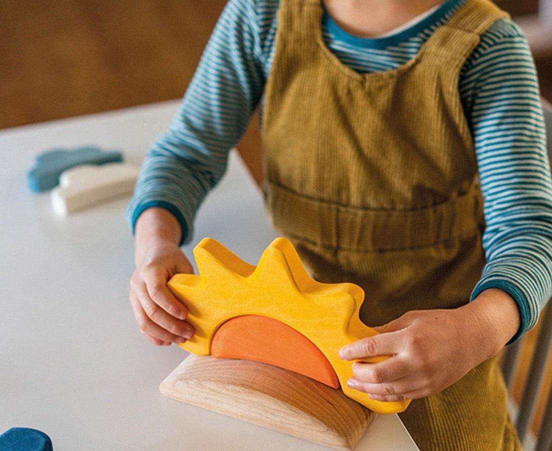 Children can summon a storm, clear the clouds, and let the sun shine again — all through hands-on, imaginative play. A delightful addition to any Montessori or Waldorf-inspired playroom.