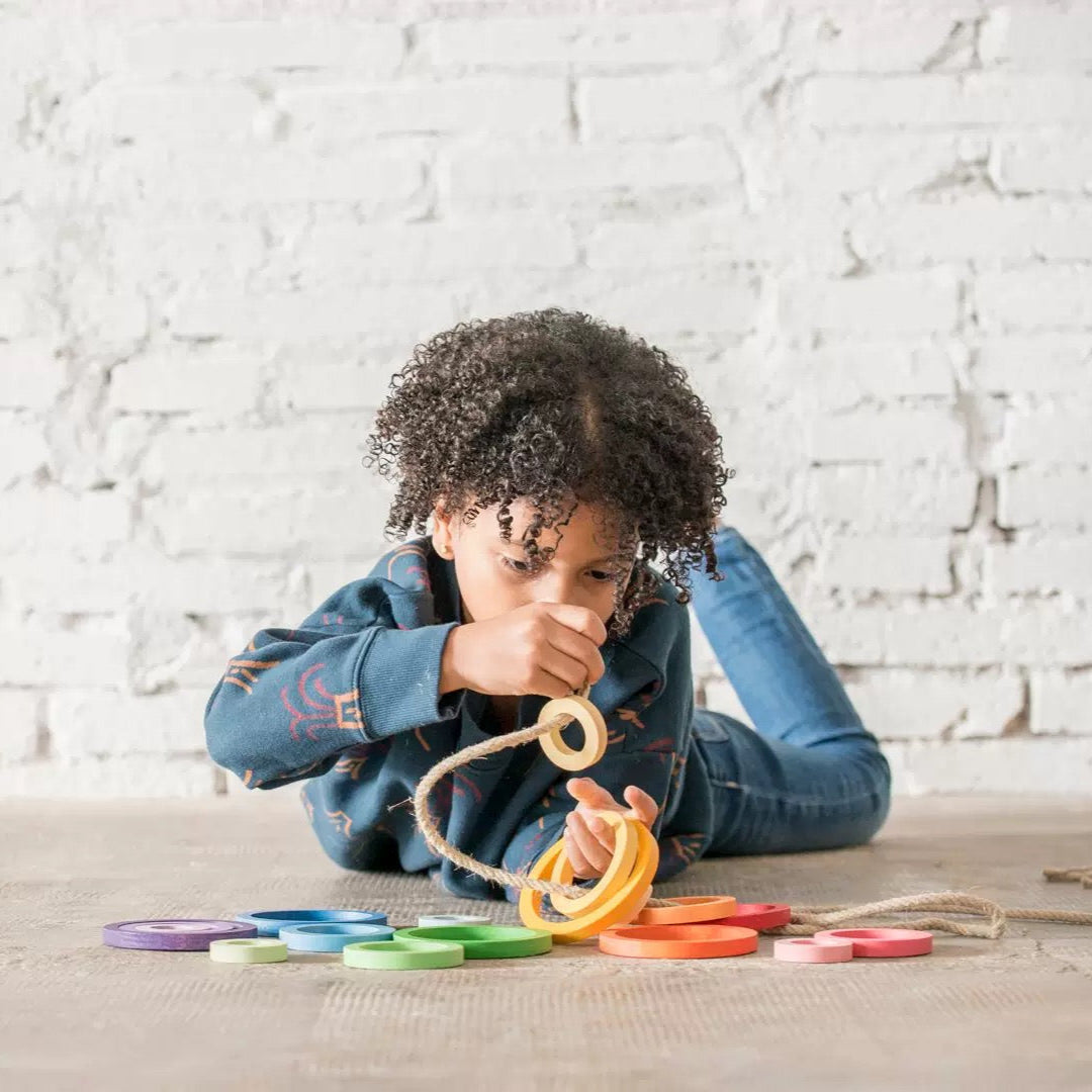 Add a burst of color and endless creativity to your child’s play space with this beautifully crafted Rainbow Nesting Rings set!