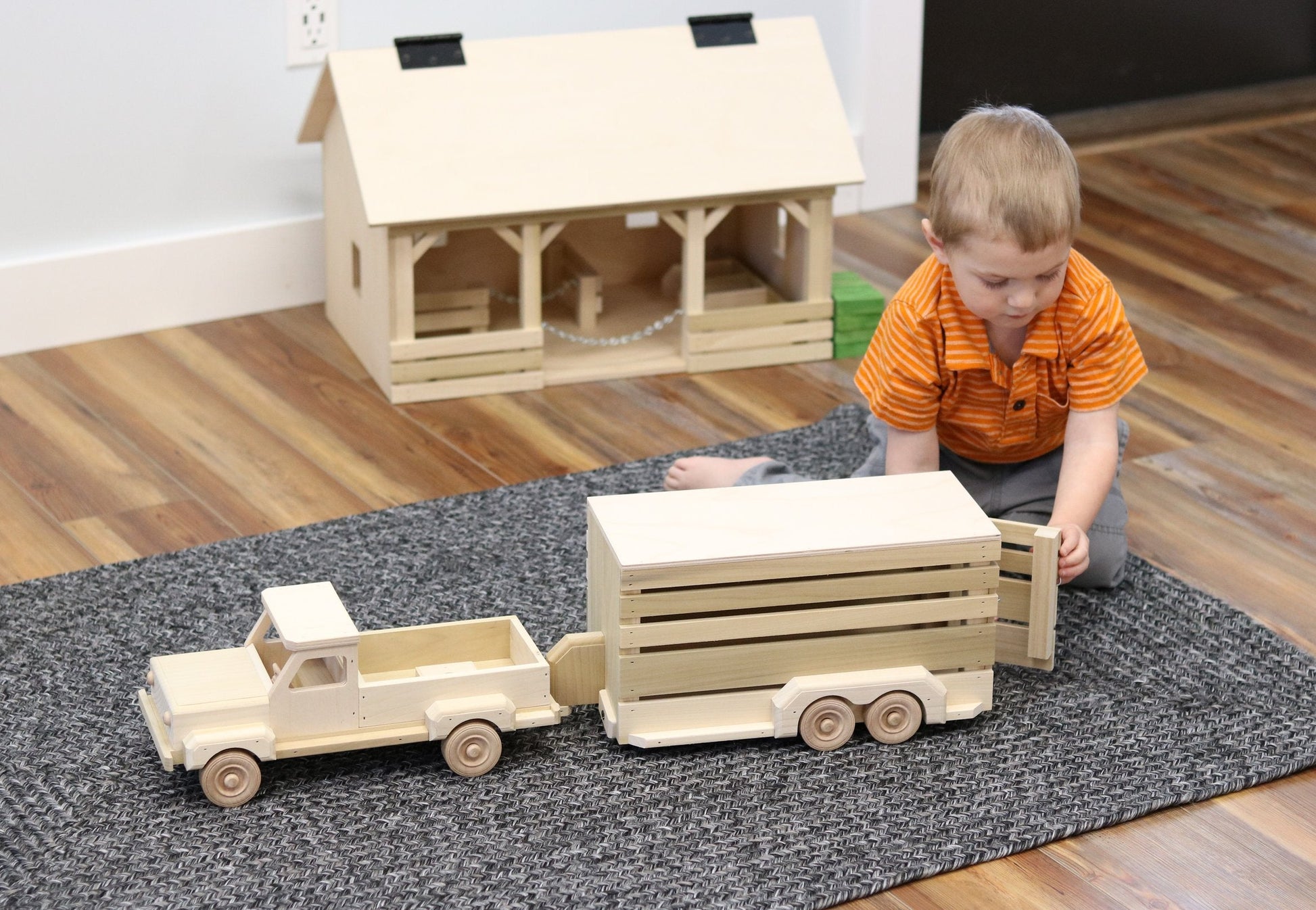 Amish-Made Wooden Pickup & Horse Trailer Toy Set, Unfinished
