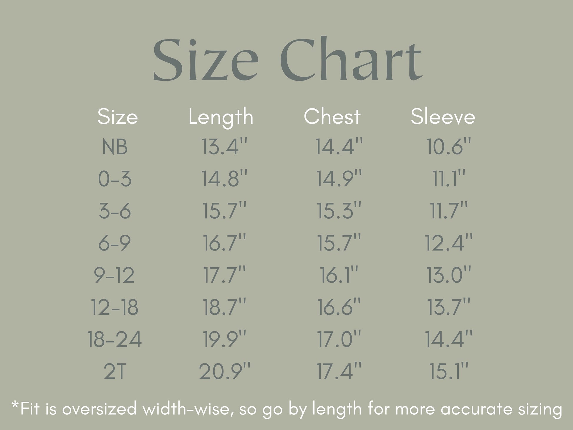 Available in sizes from newborn to 2T, our romper boasts an oversized fit. We recommend referencing the size chart in the photos and suggest sizing down if you're unsure. This ensures the perfect fit for your little one, allowing them to move freely and comfortably.