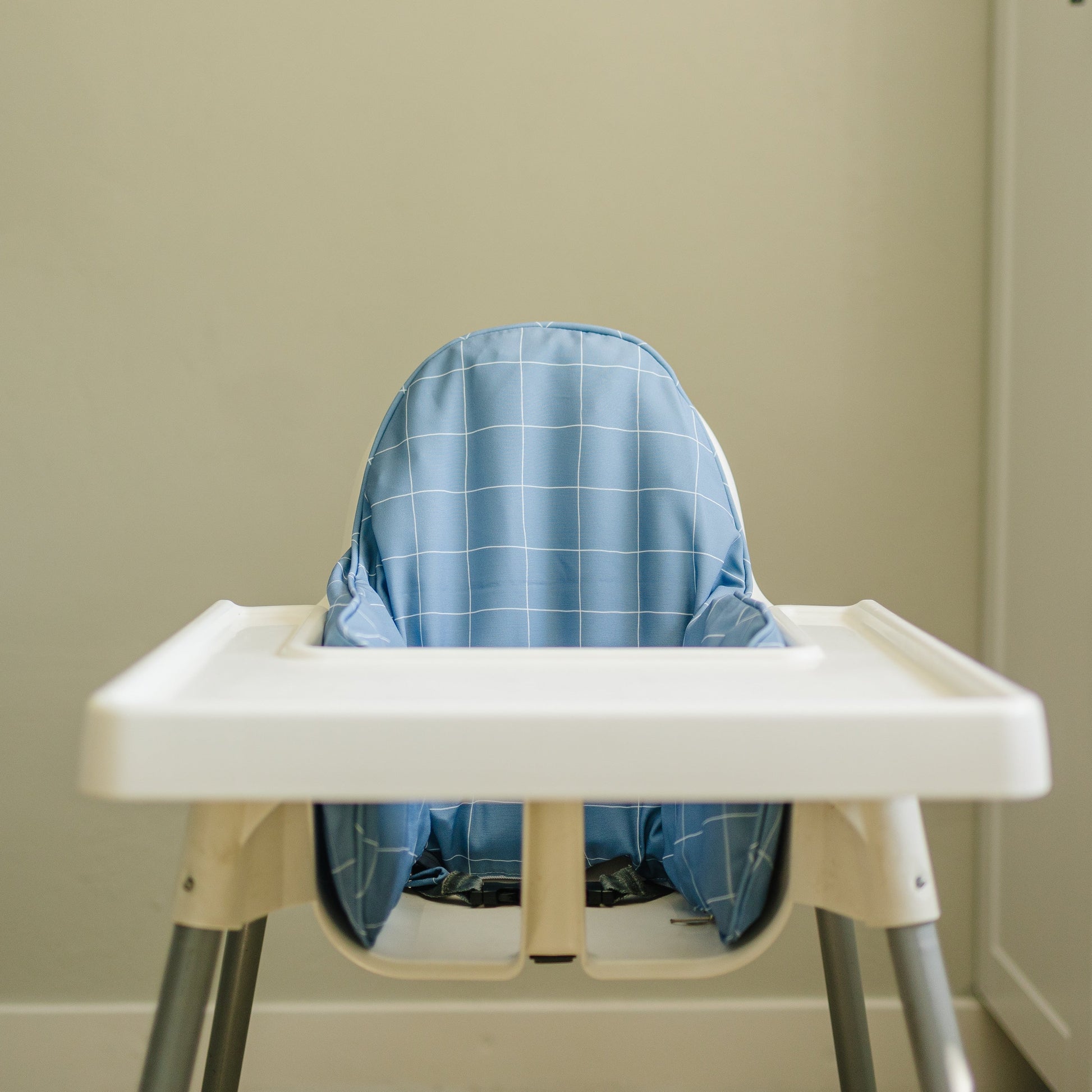Blue with white grid printed! Wipeable cushion cover for the IKEA Antilop Highchair