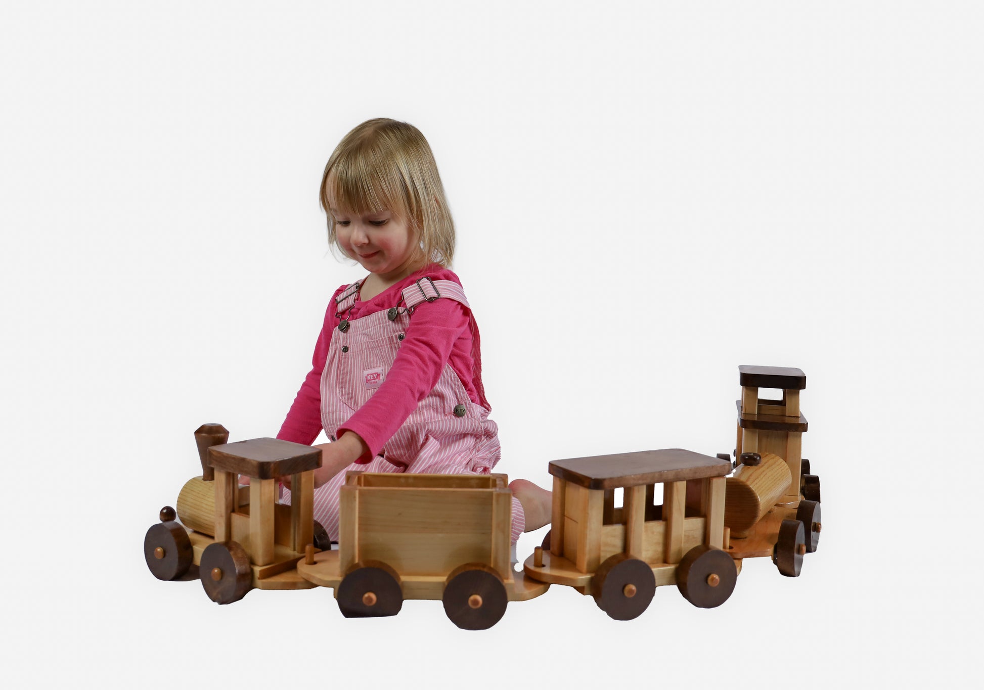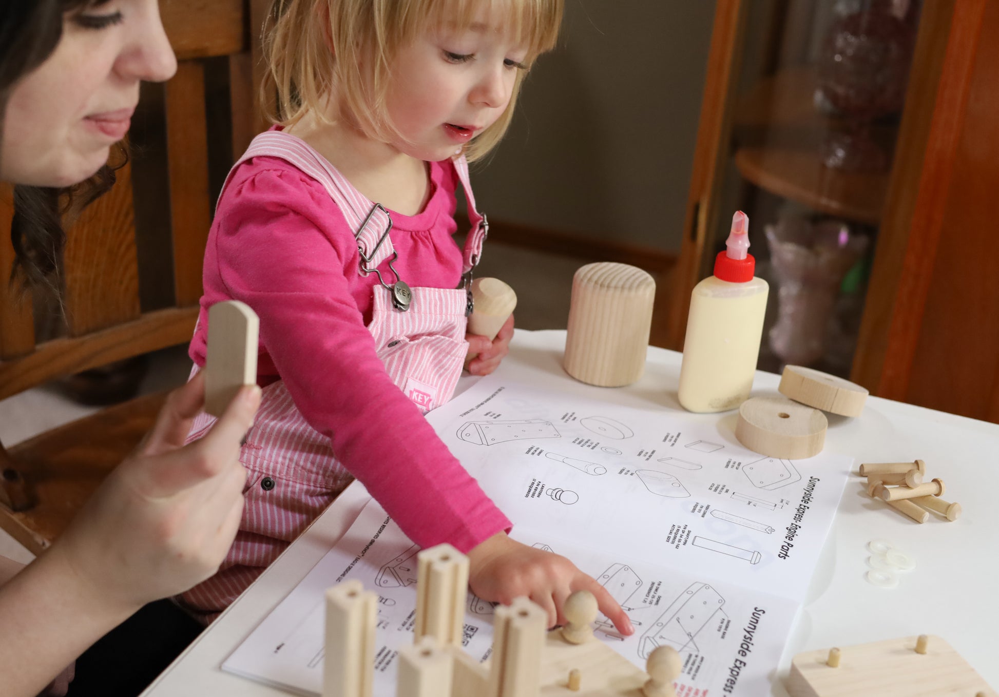 This is a quality build-it-yourself wooden train kit intended for children 3+ years of age. This STEM building project includes an engine, coal car, tanker car and caboose. Allow your child the satisfaction of building this high-quality train set with parental assistance. The assembly process promotes confidence and fulfillment by allowing the child to learn what it means to assist in building something.