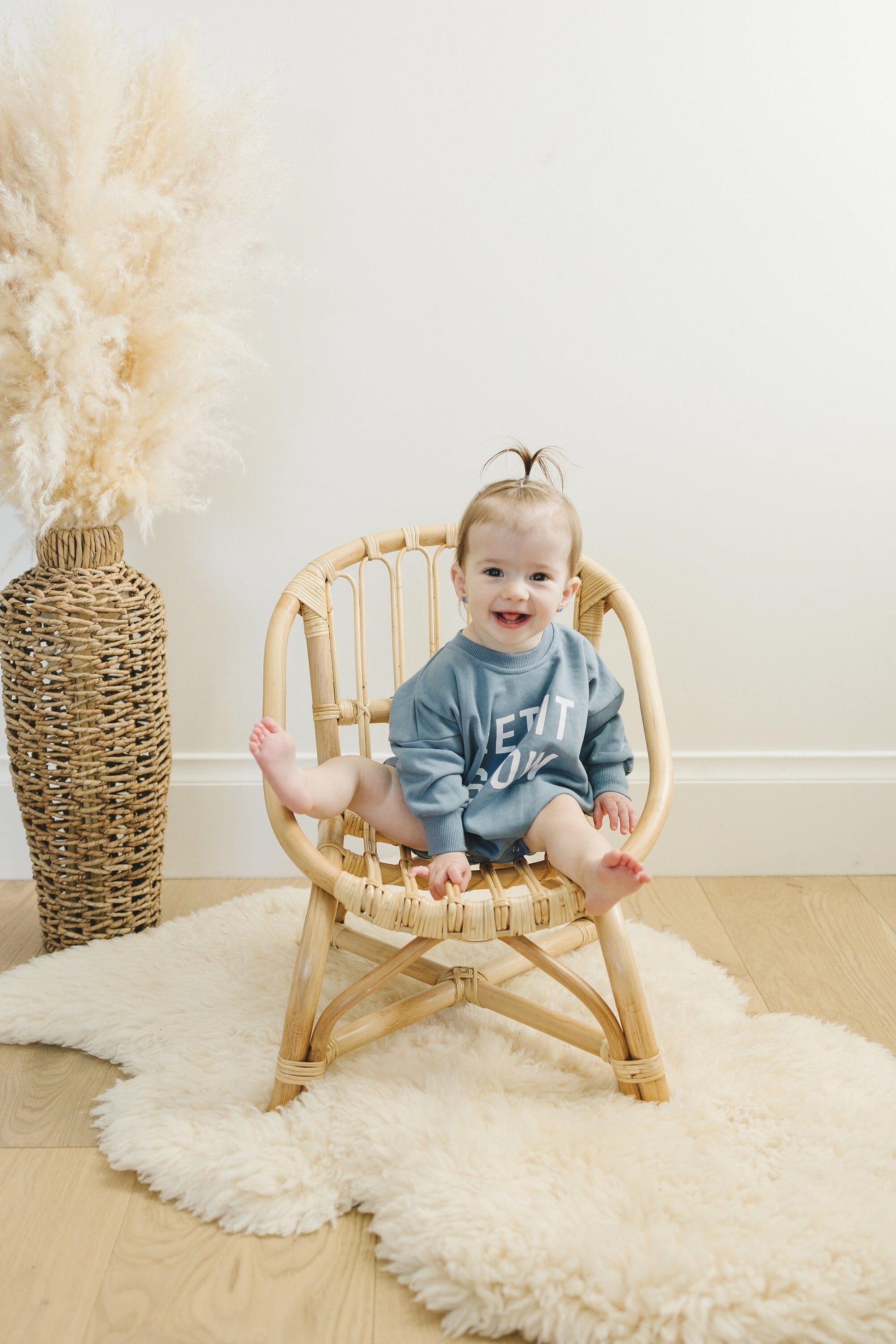 Let It Snow. graphic oversized sweatshirt romper with snaps at crotch. Lightweight terry material.