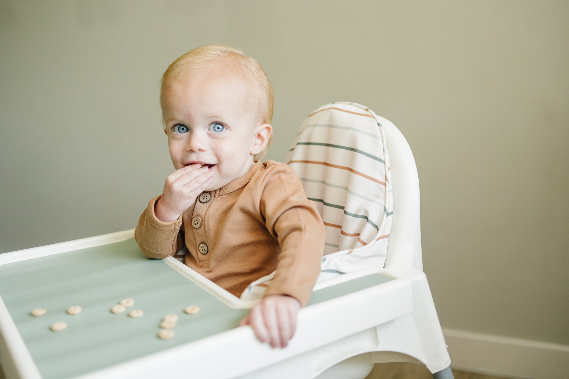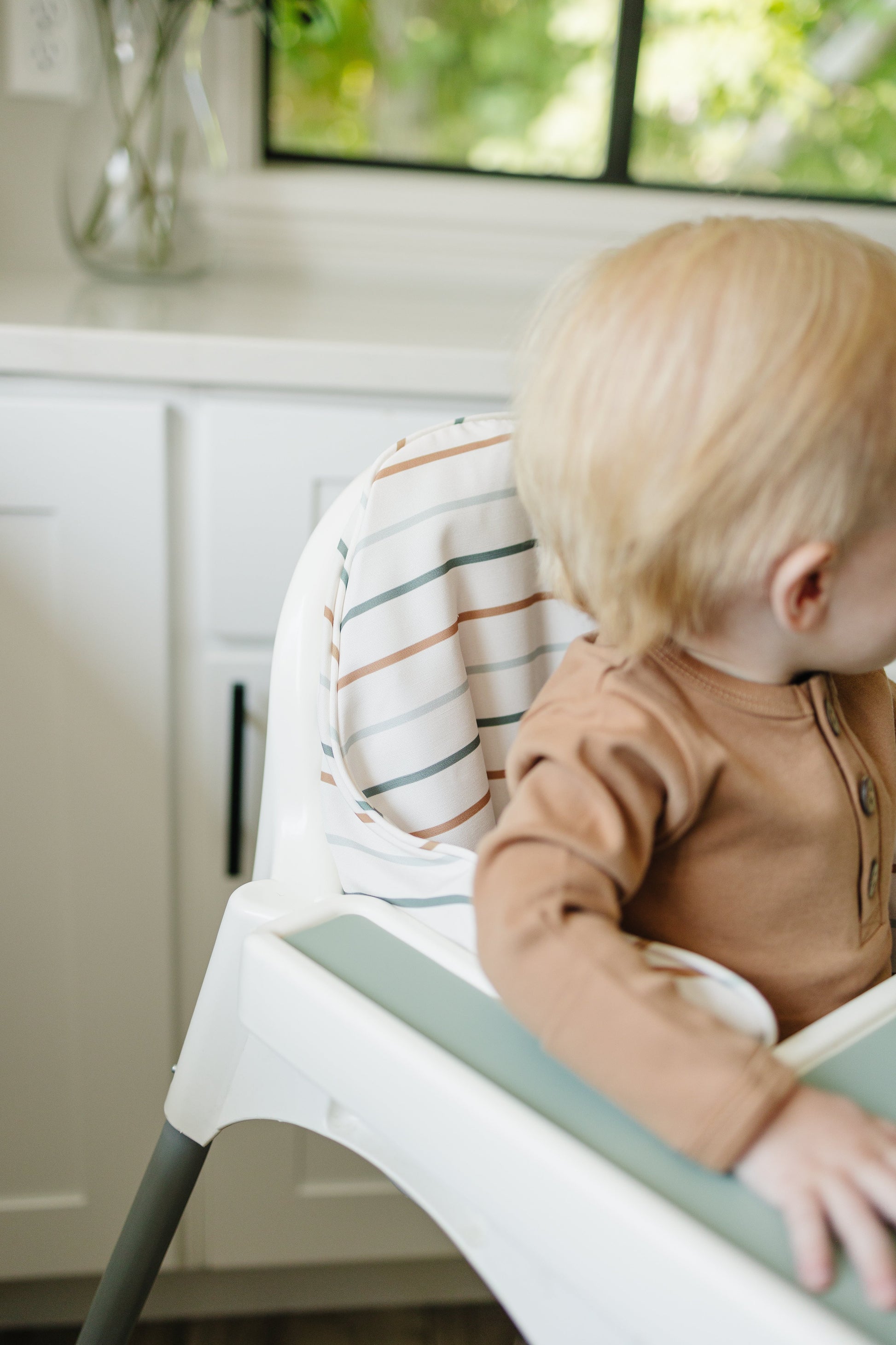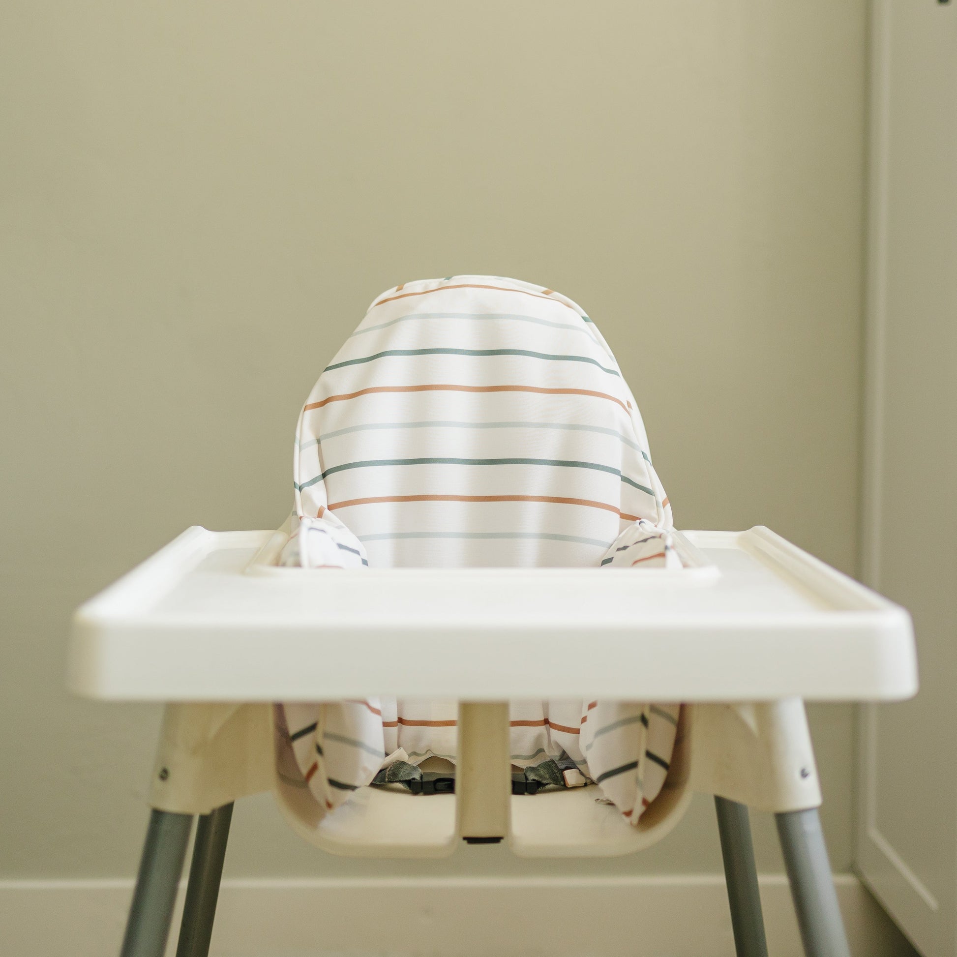 Multicolored stripes printed an off-white background! Wipeable cushion cover for the IKEA Antilop Highchair