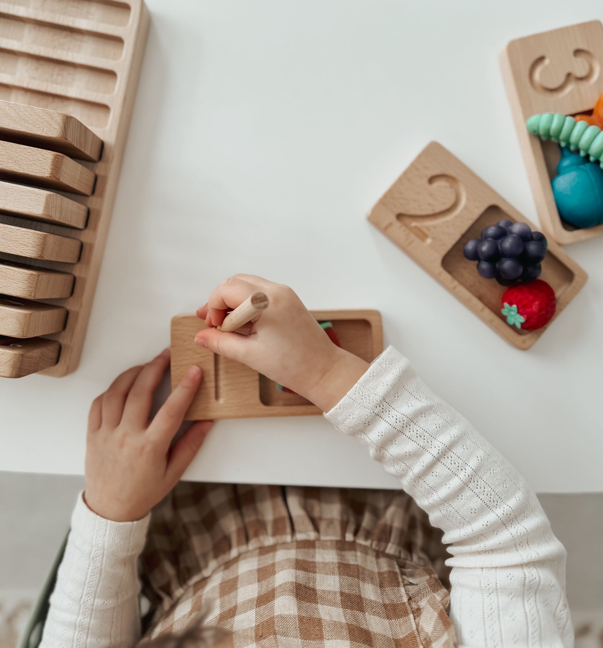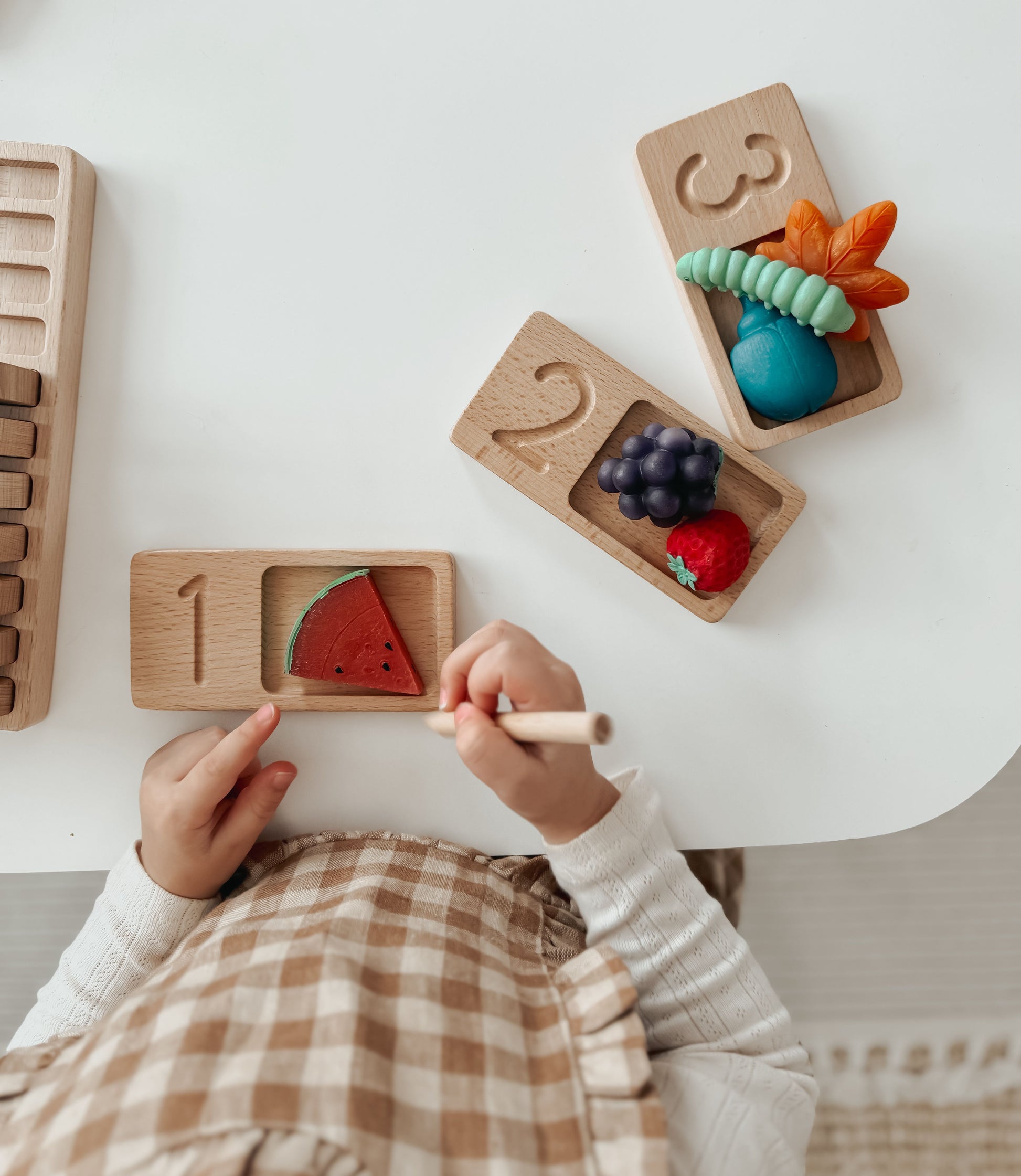 Wooden Counting Trays Set with Stand and Numbers 0-9 for Montessori and Nature Inspired Natural Play