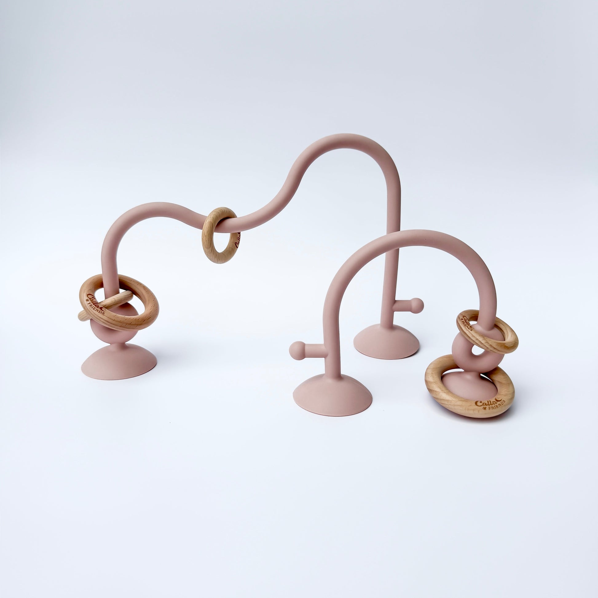 - Each set includes: one large & one small silicone suction toy plus beechwood rings.