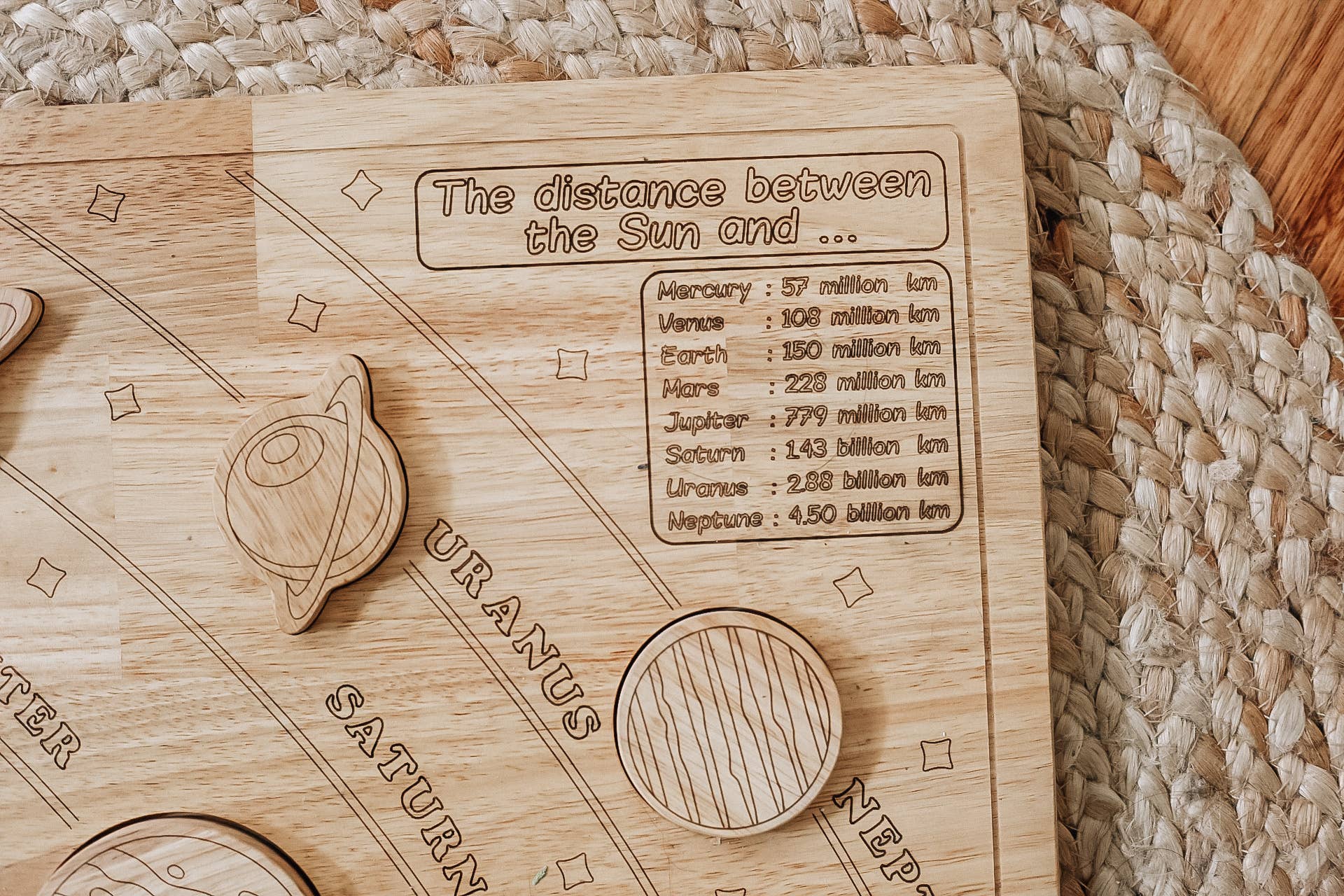 The Solar System puzzle is a great tool for children to learn about the planets and the structure of our Solar System. Puzzles can be engaging and interactive, making the learning process more enjoyable for kids. Children can learn the names of the planets as well as figure where the pieces go on the puzzle. It is made from plantation timber using non toxic materials. The puzzle provides an excellent opportunity for children to explore and develop an interest in astronomy and science. It is not only a great learning resource but also promotes the development of childrens fine motor skills and language development as they learn to identify the planets.