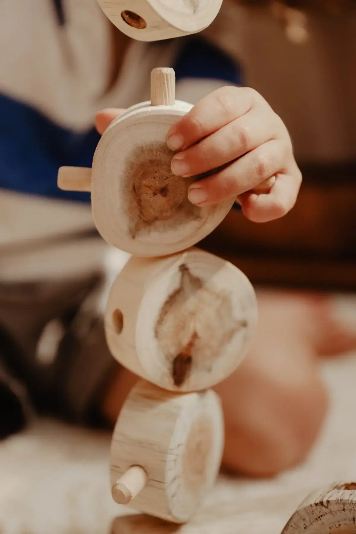 Wooden Building Toy for Kids with Natural Tree Pieces