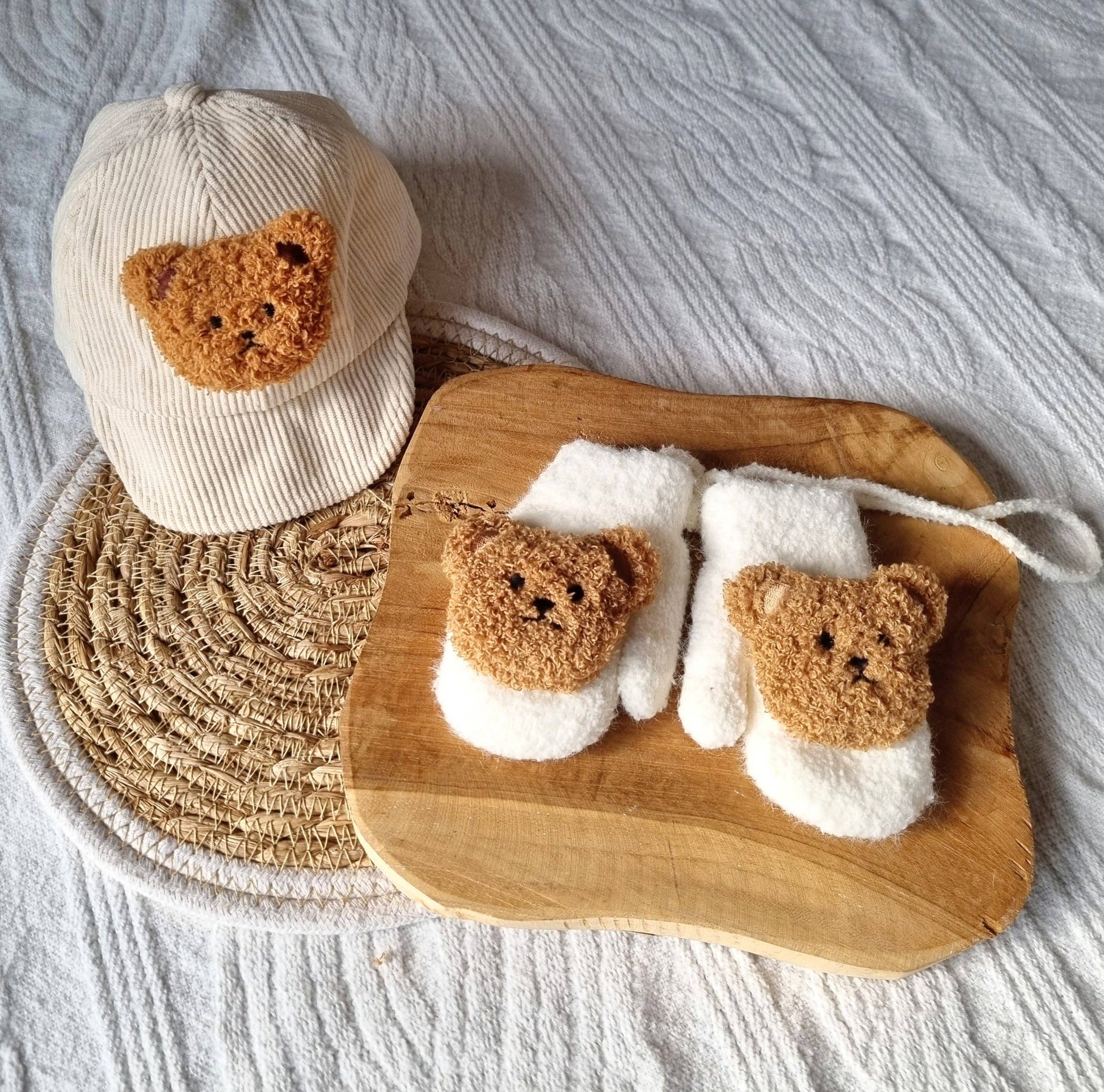 Hip and too cute! These super soft and warm teddy bear mittens are essential this winter. Beige / sand color with a sweet soft teddy bear on top. The mittens are suitable for children up to 2 years old.